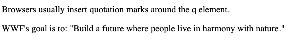 <p>Browsers usually insert quotation marks around the q element.</p>