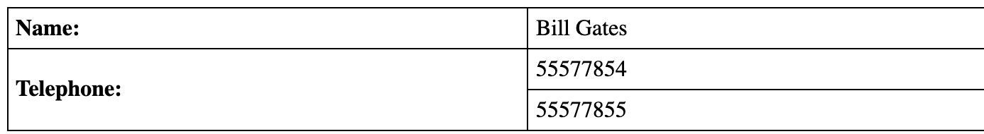 셀을 두 개 이상의 행으로 확장하려면 다음 rowspan속성을 사용하십시오 .
