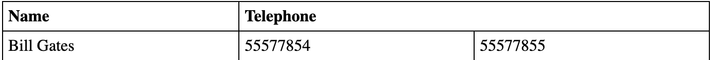 셀을 두 개 이상의 열로 확장하려면 다음 colspan속성을 사용하십시오 .