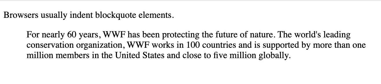 브라우저는 일반적으로 <blockquote>요소를 들여씁니다 .