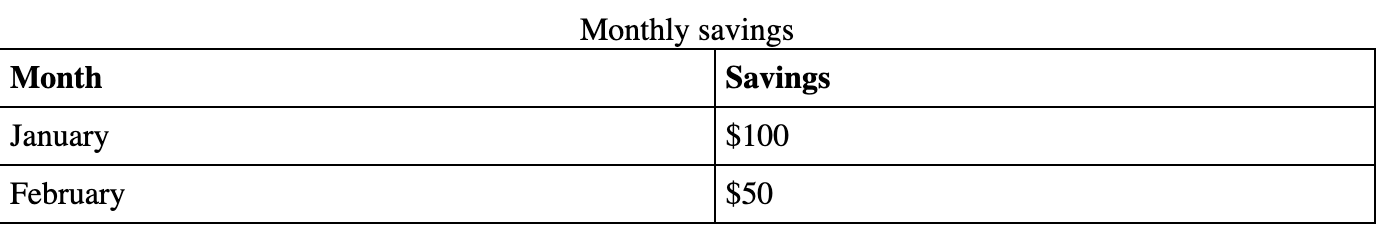 표에 캡션을 추가하려면 다음 <caption>태그를 사용하세요 .