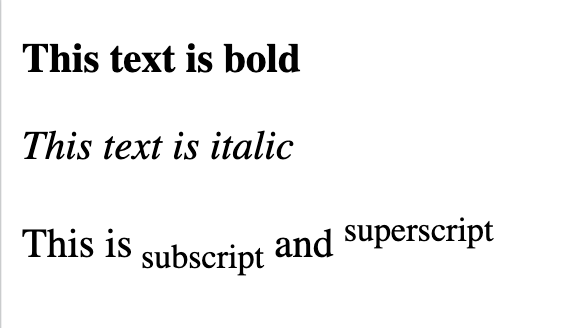 <p>This is<sub> subscript</sub> and <sup>superscript</sup></p>