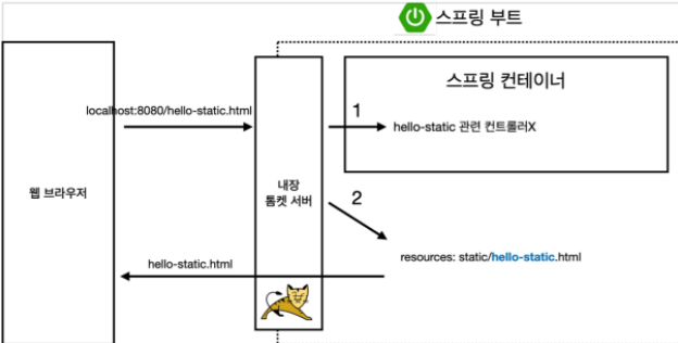 - localhost:8080/hello-mvc에 접속하면 내장 톰켓 서버로 간다.