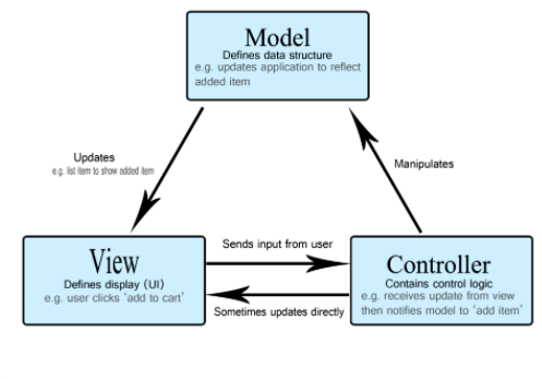 - 컨트롤러(Controller): 명령을 모델과 뷰 부분으로 라우팅합니다.