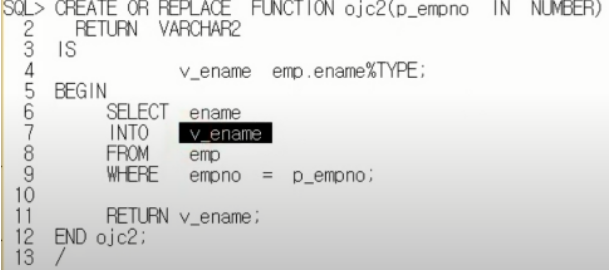 RETURN TYPE이랑 INTO 꼭 써줘야한다.