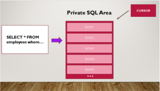 SELECT문으로 특정 테이블에 있는 데이터를 조회할 때, 이 EMPLOYEE라는 테이블의 조회된 값들이 Private SQL Area에 저장되고, 커서로 이영역을 가리킨다.