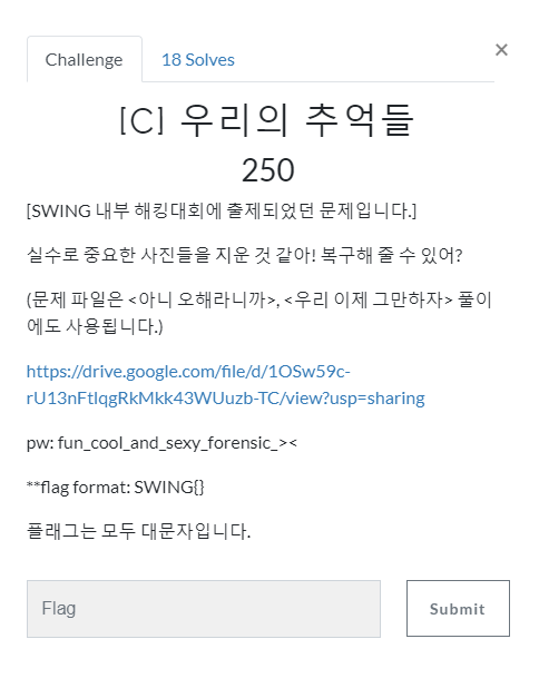 이번에 풀어볼 문제는 N0named wargame 문제 중 하나인 [C]우리의 추억들문제를 풀어볼 것이다.